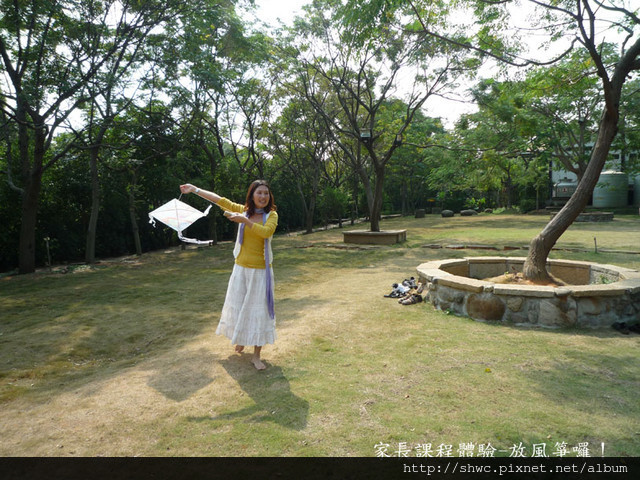 老師帶我們用飛翔的姿勢去看看走廊上美麗的風鈴,風箏跟風車。