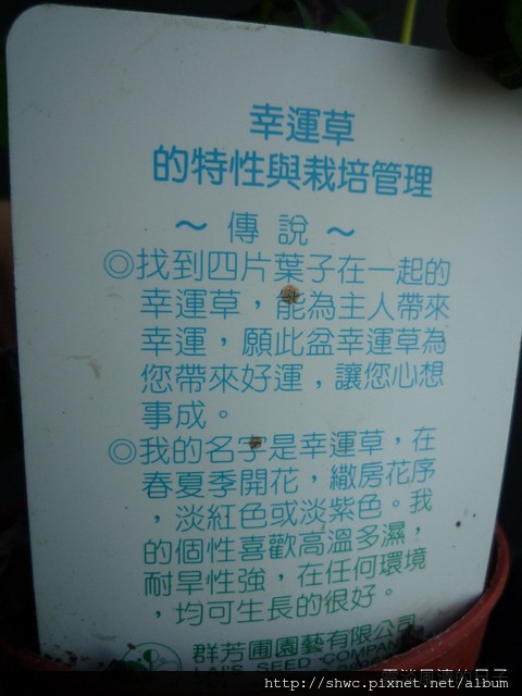 我喜歡幸運草的含意,所以帶了一盆回家,希望給家裡帶來幸運!