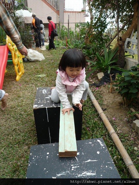小朋友一到就迫不及待地開始玩沙坑,走感統,還有溜滑梯。