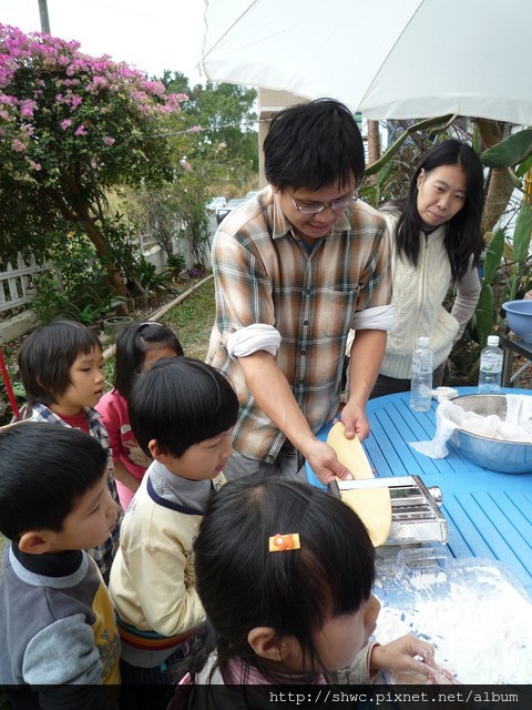 中午的餐點就由小朋友輪流上場自製手工麵條。