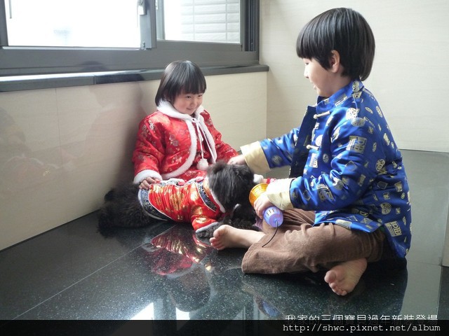 好了!終於把我們家三個寶貝的過年裝收集齊全!
