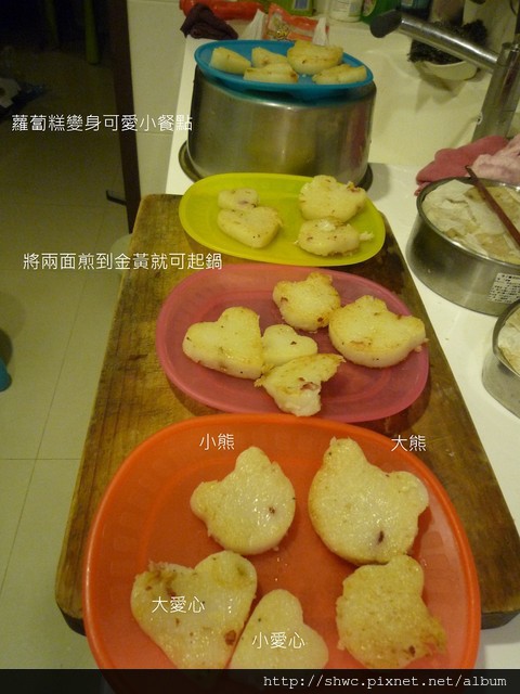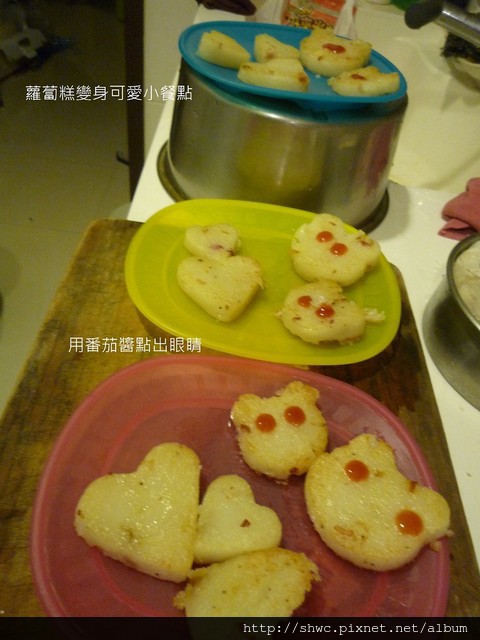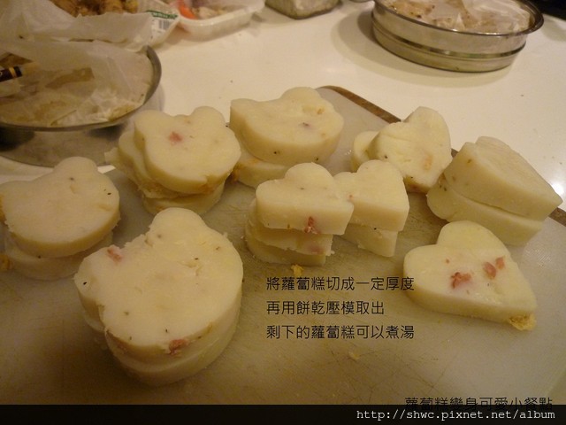 回來之後降將蘿蔔糕切薄片一點,然後用餅乾模型押出形狀。