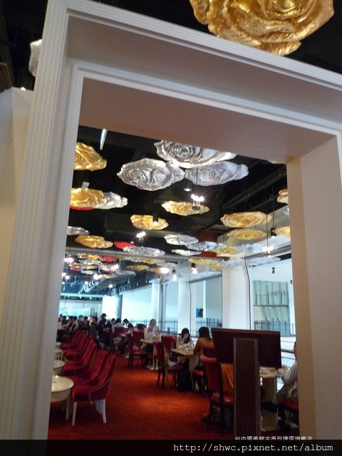 肚子餓了,意外抬頭看見二樓的餐廳天花板換成玫瑰。