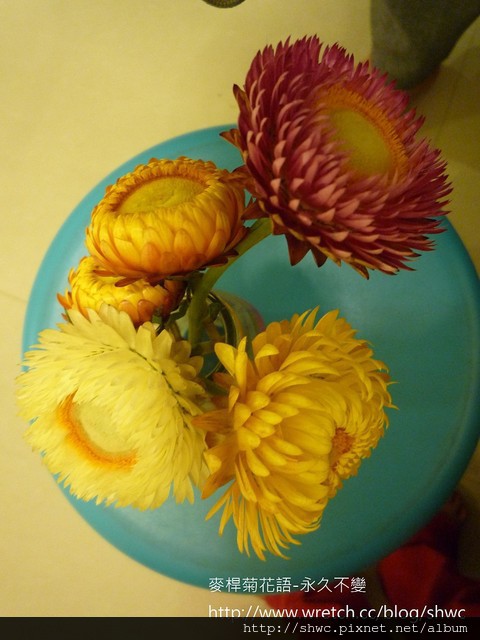回家找資料發現,他的名字叫做麥桿菊,花語就是永久不變!