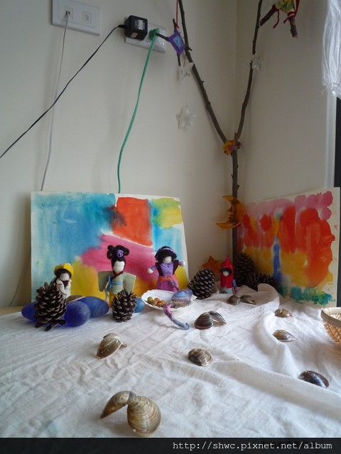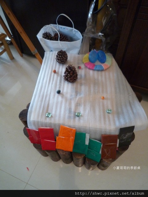 於是號召兩個孩子,利用現成的東西佈置屬於角落的季節桌。