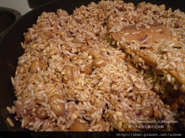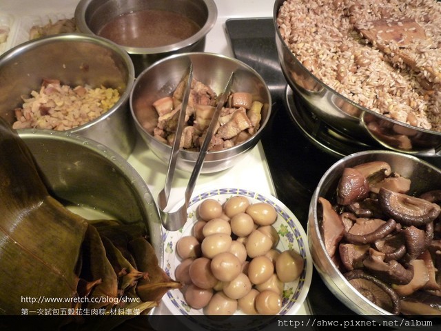 比較害怕的試煮肉粽的時間!這是我第一次用五穀米混糯米包,查網路資料是說混糯米是為了讓粽子可以黏,比較不會餡跟米分開。