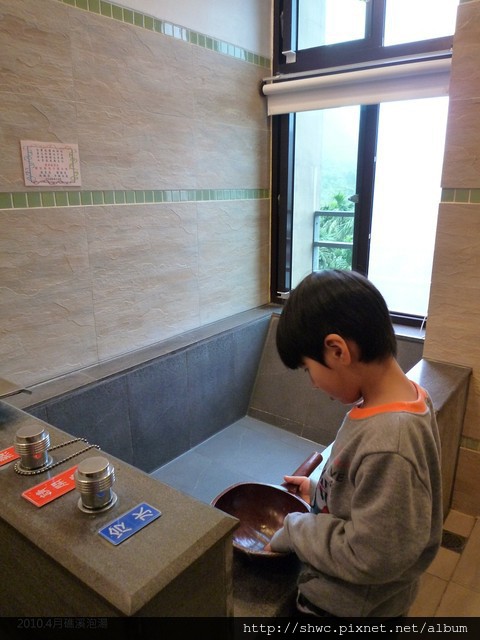 湯池還滿大的,所以一家四口泡得很高興。
