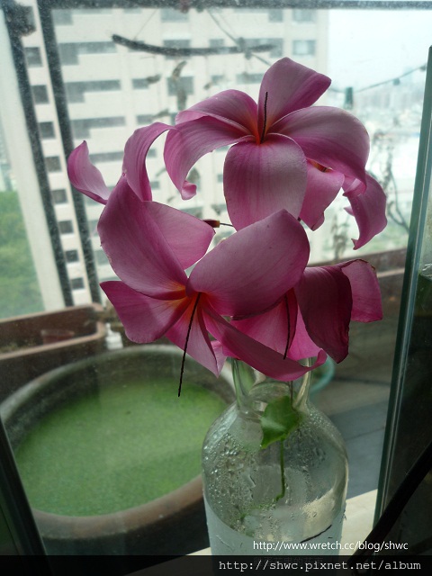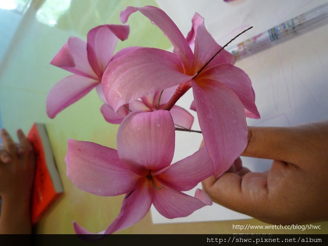 剛好讓我找到小樹枝,在等待的空檔就把雞蛋花與小樹枝結合。