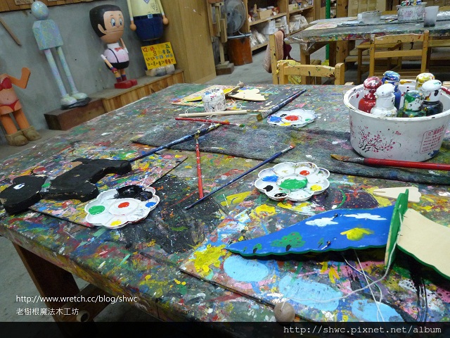 彩繪之前他會簡單講解廣告顏料的使用方法,牆上也有一些關於彩繪的訣竅與配色說明。