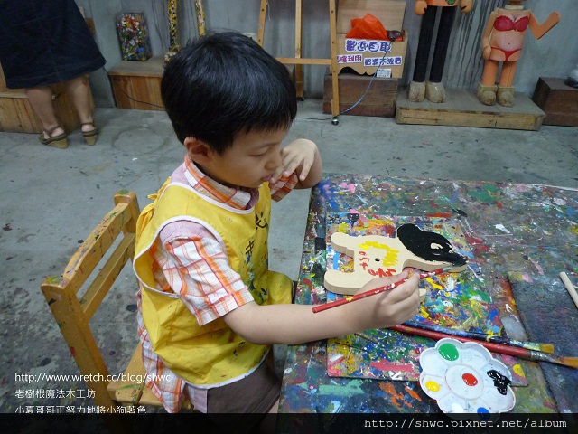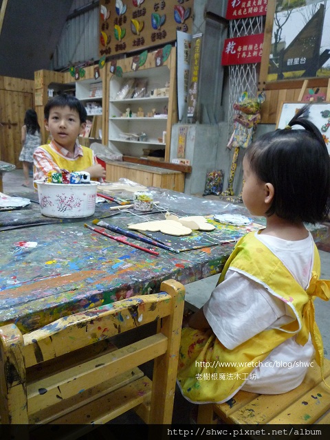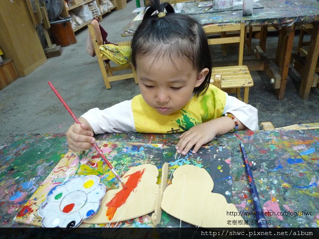 我們母子三人逛了一圈之後,小夏哥哥決定作小狗的時鐘彩繪,我要做鳥的彩繪,小綠妹妹作小蝴蝶的彩繪。