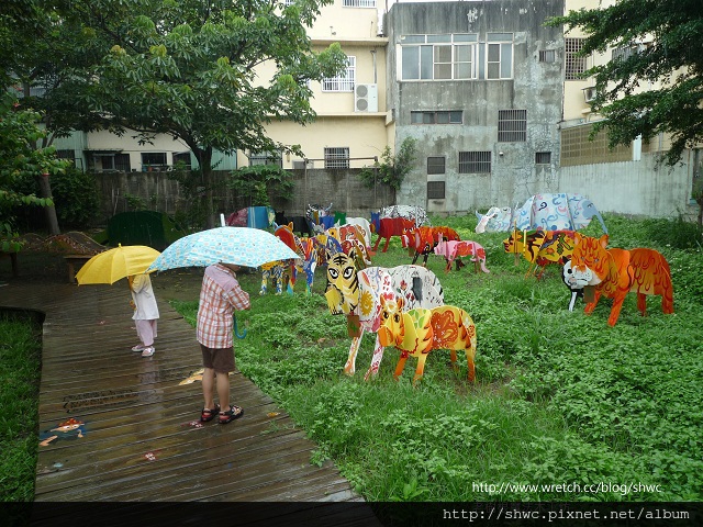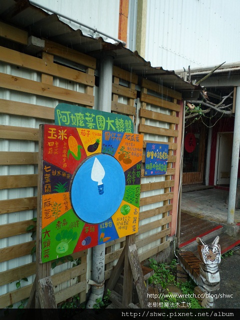 我們母子三人就撐著傘逛逛阿嬤的菜園,也看見很多彩繪的老虎。