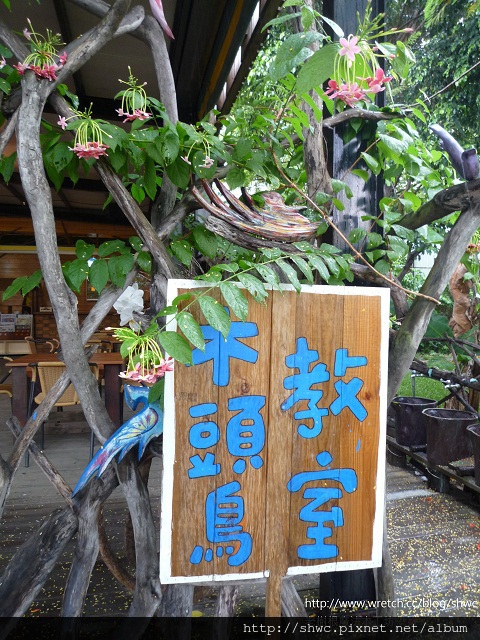 沿著木棧步道走會來到木頭鳥教室,平時沒營業,假日有提供簡單的餐飲。