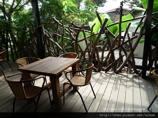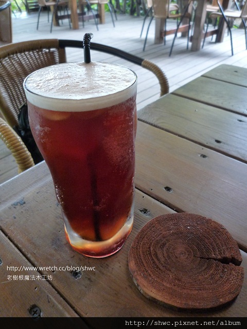 紅茶的杯墊就是原木,跟主題很契合。在都市地方難得有一塊這樣的休閒場所,挺舒服的。
