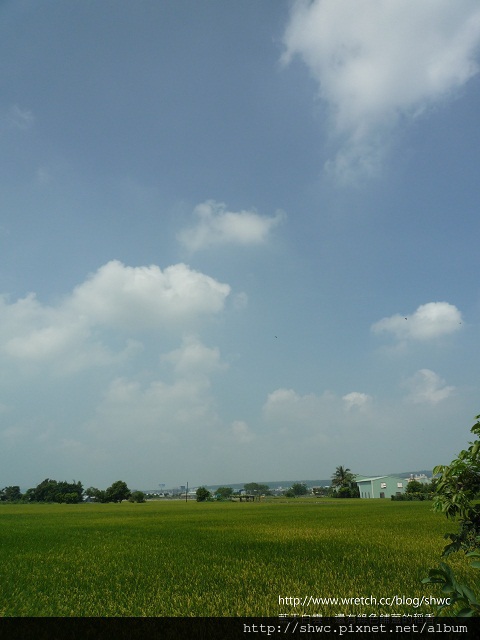 停車的路旁剛好是一大片的金黃稻穗,很漂亮的顏色!尤其在藍天白雲的陪襯下。