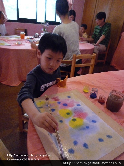 我們選擇濕水彩畫,跟著老師的五音笛聲來到濕水彩的體驗教室。