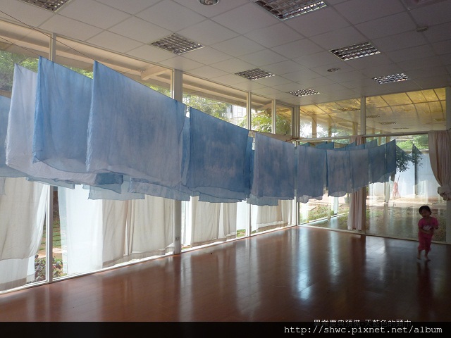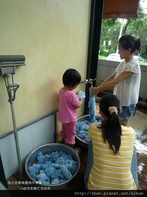 畢業慶典上需要的染布頭巾,學校邀請家長一起來幫忙。
