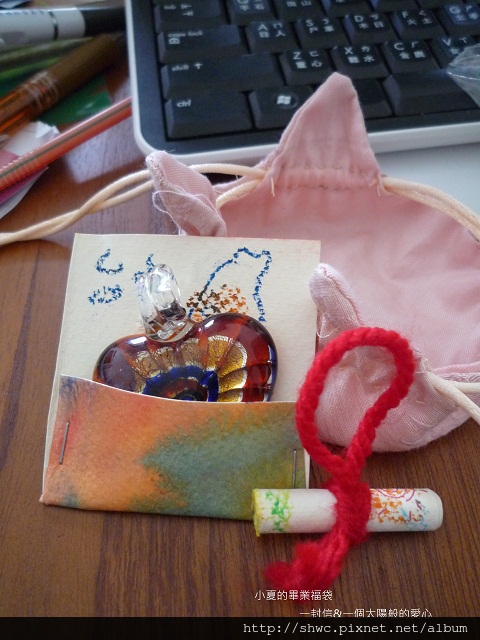 我用濕水彩的畫紙作了一個小袋子來盛裝這個愛心,我還特別畫上了台灣,標示出台中。