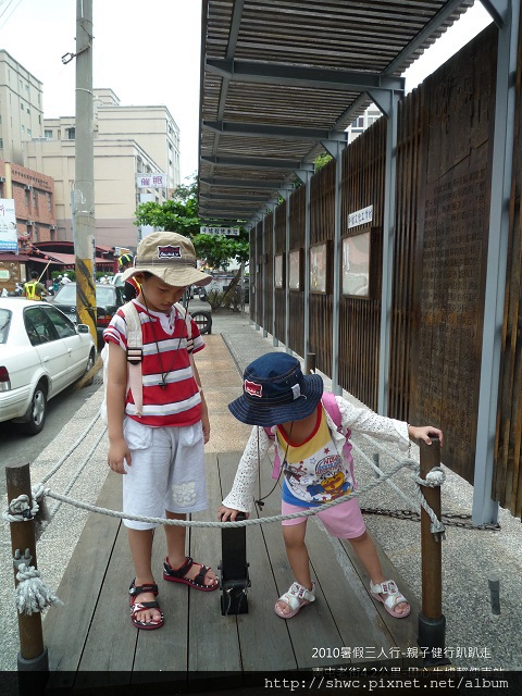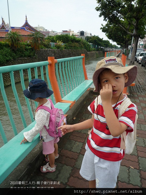 在經過南屯溪的時候,兩個孩子對於川流不息的水有點恐懼。
