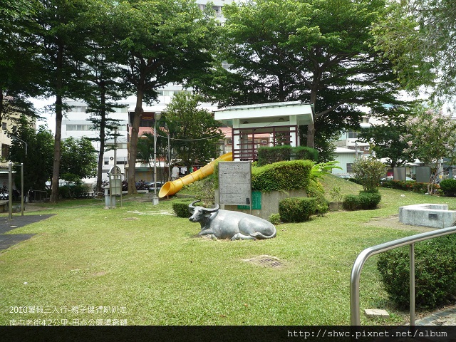 公園裡有一個牛的雕像,我相信這裡以前一定是牛的開心樂園。