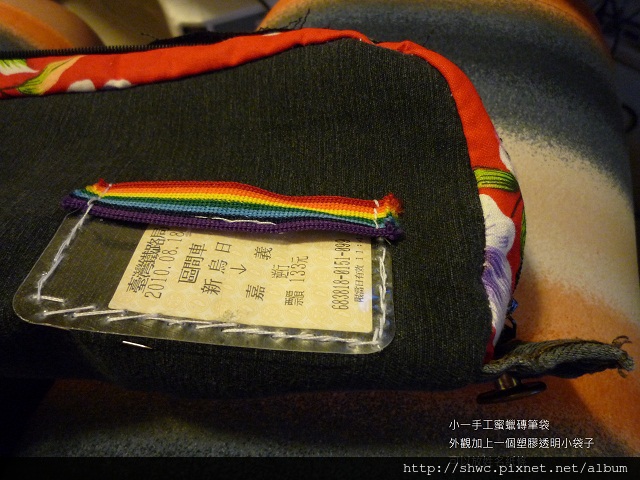 縫好外袋的部分,我想在外觀加上一個透明小口袋。