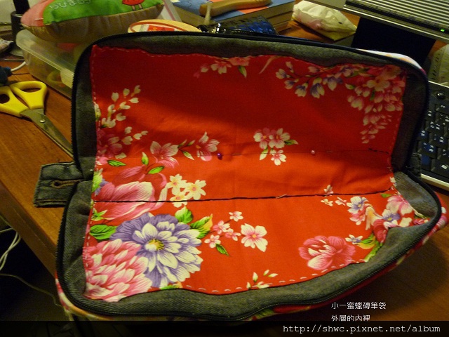 好不容易完成拉鍊的部分,接下來就要把拉鍊跟外層的布組合。