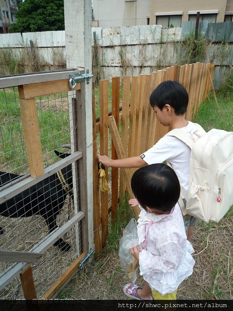 今天早上陪他上課的時候,他就拿著香蕉皮,帶我們到後院去找小黑。