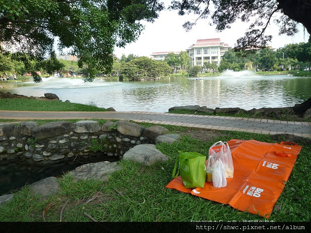 沒有刻意的慶祝,一家人帶著兩台腳踏車來到中興大學野餐。