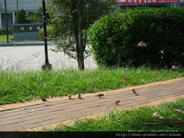 在草叢旁邊有很多小鳥等著我們的麵包屑,果然這些小鳥都是不怕人的阿!