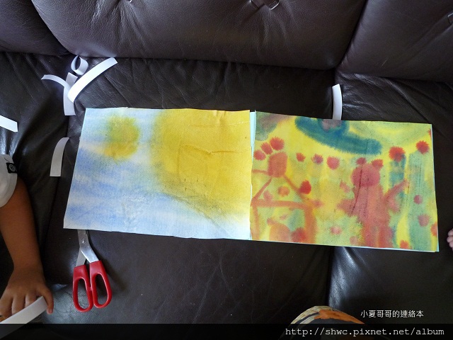 挑選自己畫的作品,裁剪大小後,得在貼上雙面膠才算完成封面。