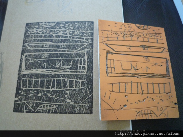 只要用力將版子上的線條描深一點就可以了。不過真的得很用力!不然印不太出來層次變化。