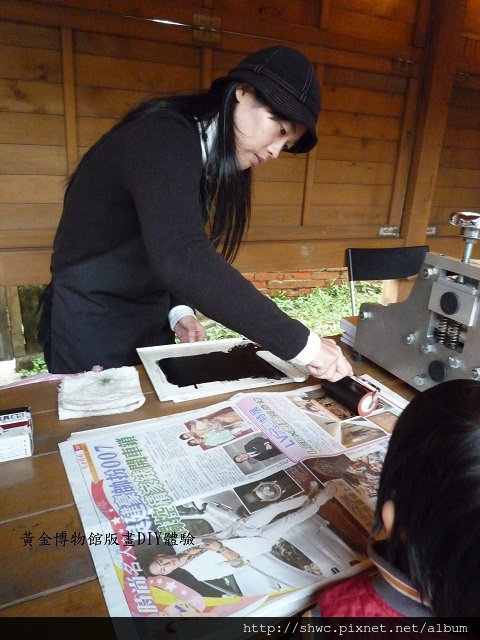 印好後,會教導你用沙拉油將版畫上的黑色油墨去掉。