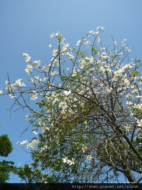 白色的花朵,滿滿的掛滿枝頭,藍天下顯得特別獨特。