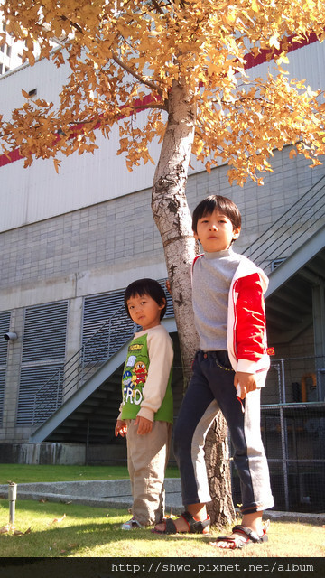 找兩個孩子在樹下跑跑跳跳,找找小刺刺果,感覺秋天特有的顏色。