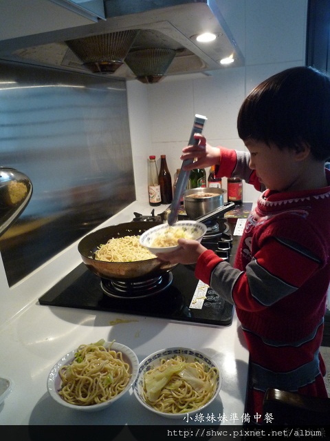 今天中午我問小綠妹妹要不要一起來動手煮炒麵跟肉燥?