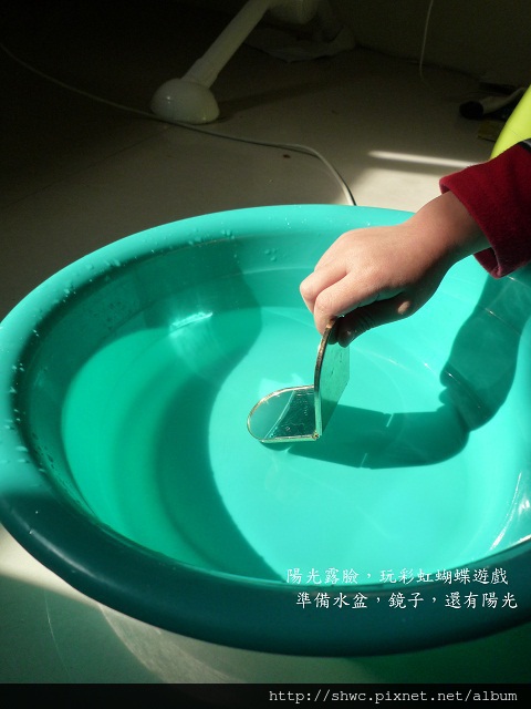 於是準備了水盆,水跟鏡子,當然要有陽光。