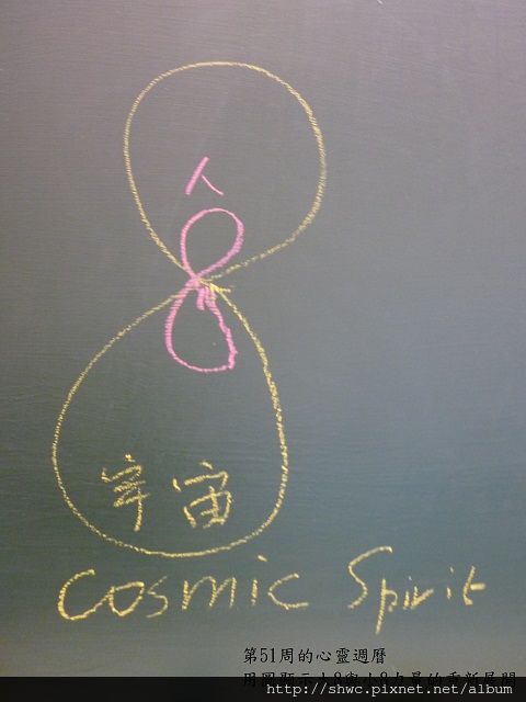 老公特別畫了大8跟小8的圖來說明宇宙與人的力量。