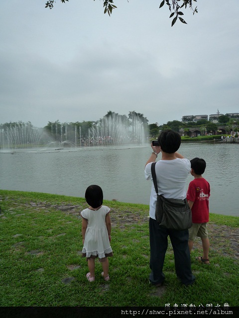 兩個小朋友很喜歡運動公園,到達時間剛好有水舞,就直接坐在草地上欣賞。