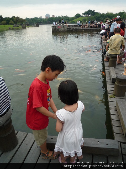 而十元的飼料也讓兩個小朋友餵鯉魚餵得很開心!