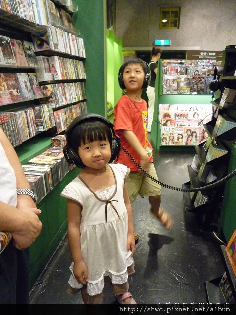 吃飽後去逛逛誠品商店,兩小聽音樂聽得很開心。