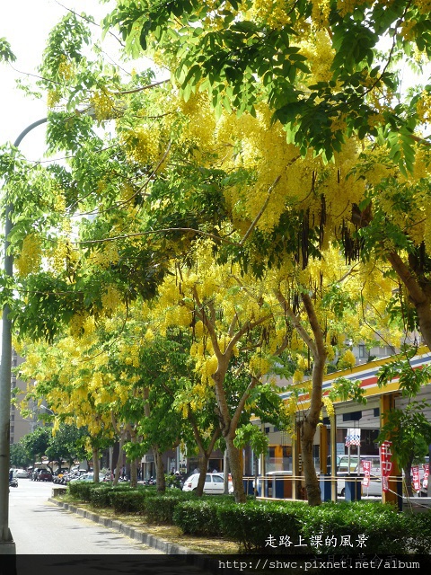 沿途的阿勃勒已經花開滿滿,黃金雨飄落很漂亮。