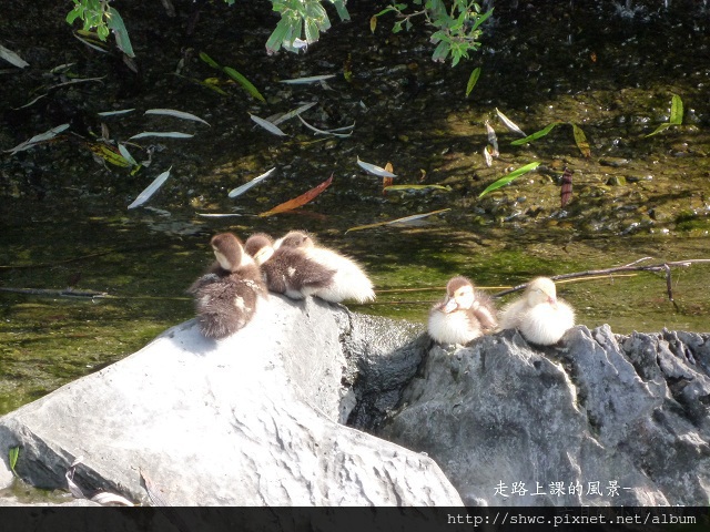 看著他們在瀑布旁的石頭上整理羽毛跟打瞌睡的模樣很可愛。