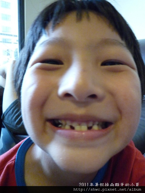 大班畢業後念小一換掉兩顆門牙,現在升小二又換掉兩顆牙齒。