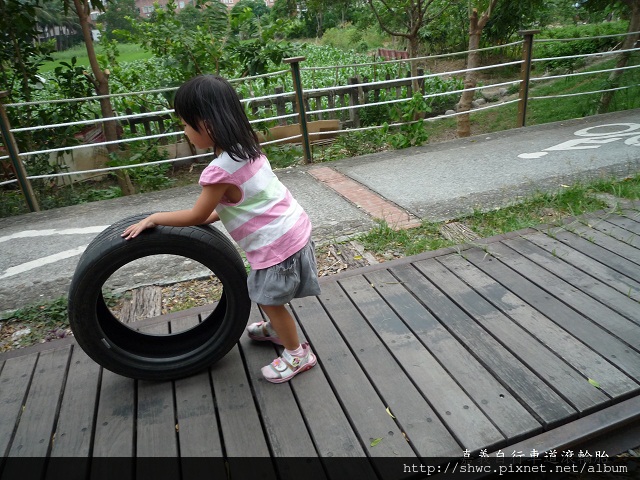 逛完花卉特區,就帶著孩子到自行車道滾輪胎,傍晚不少人都來這騎車或散步挺舒服的!