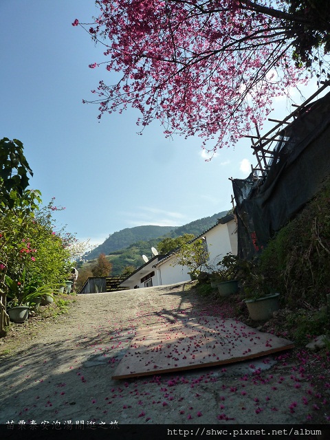 泡完湯我們到附近的吊橋走走逛逛,一路上除了大湖的草莓田之外,就是火紅的山櫻跟白色的高接梨花最耀眼。