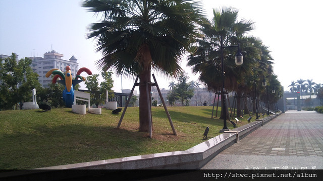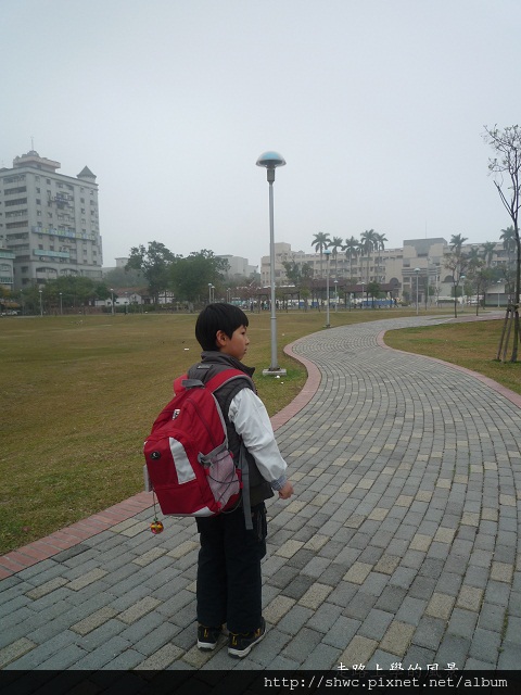 在到達學校前會先到文化公園,然後在過馬路到學校。