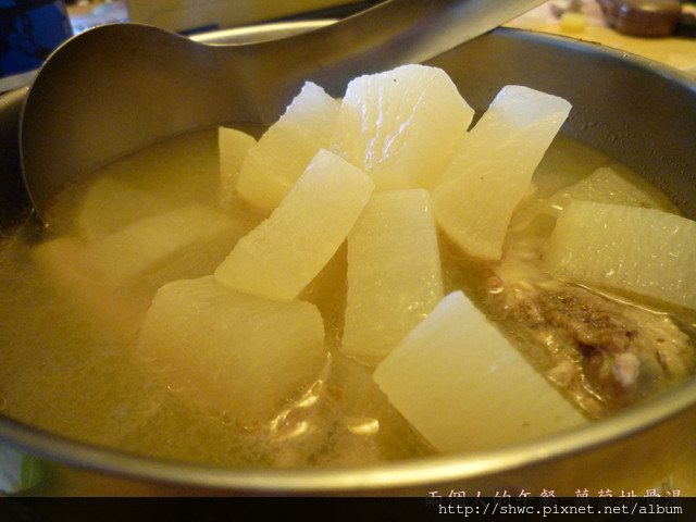 我是將蘿蔔跟排骨分開處理,如果你嫌麻煩可以把排骨燙好之後,跟蘿蔔一起煮,煮到蘿蔔用筷子穿的透即可。