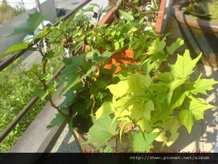要注意是有芽點的部分..這樣不用多久就有綠色的地瓜葉可以吃了