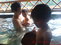 所以爸爸就帶著還有鼻音的兩個寶貝到泰安泡湯去
