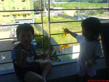 照片說明:我在陽台掉了許多星星及月亮的裝飾,他們很喜歡跟我一起坐在陽台。