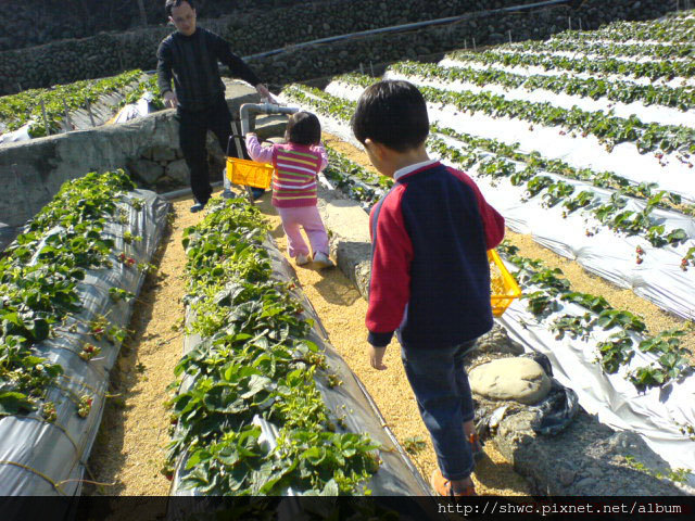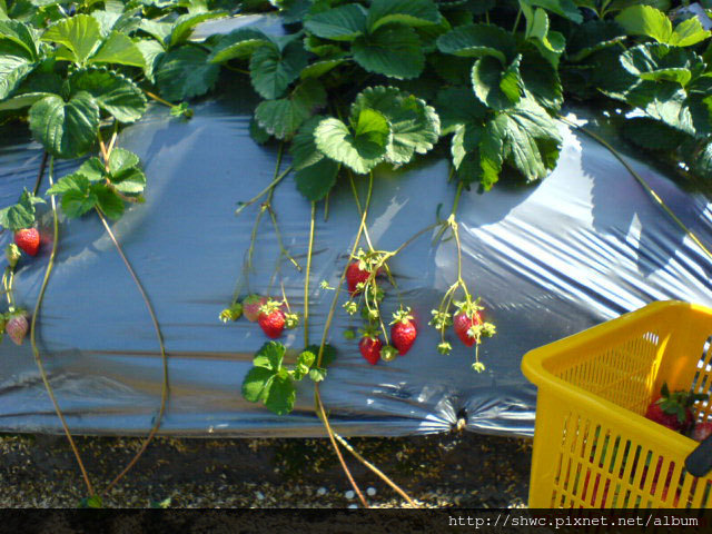 跟老闆拿了剪刀及籃子後就往草莓園走。老闆娘看我的架勢很有經驗,我跟他說小時候有種過啦!